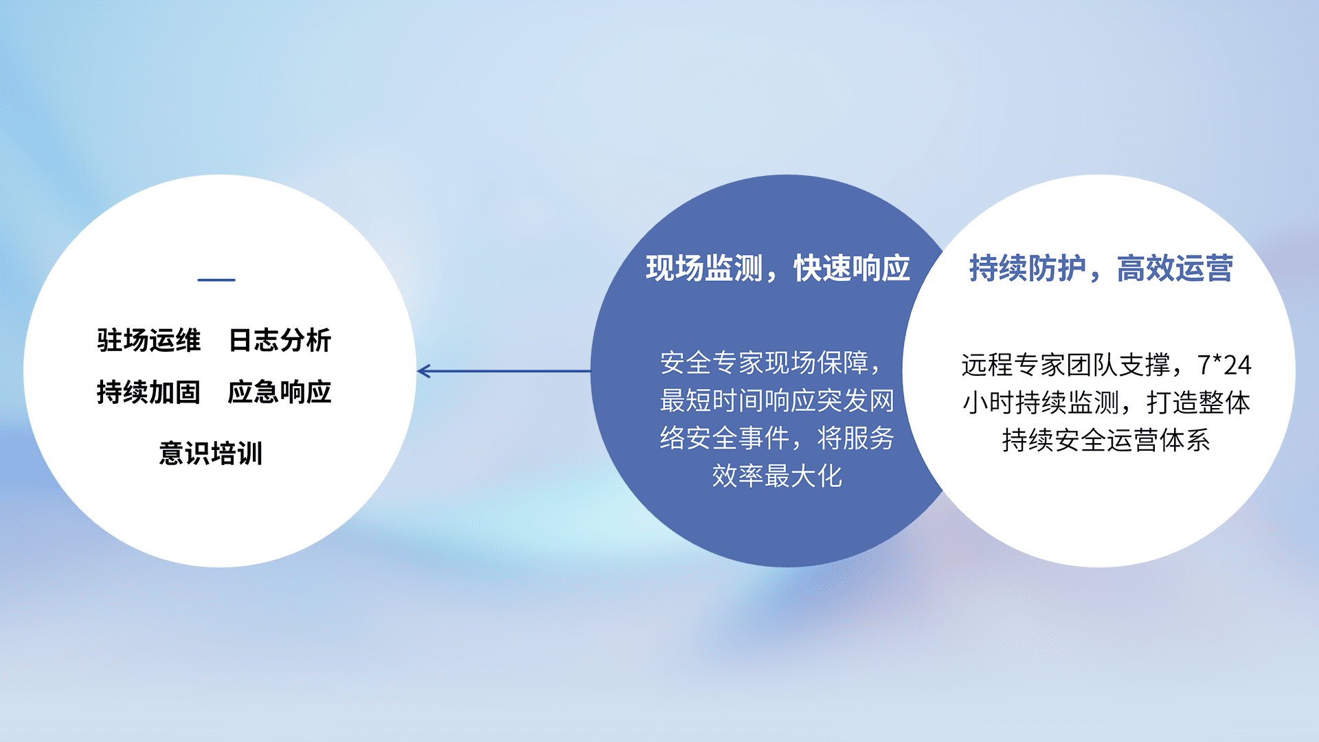 针对客户行业特性,,提供专属的一站式安全管理服务,,帮助客户全面感知网络空间威胁,,,,通过安全专家的线上、、、线下防护支持,,,实现风险闭环,,将安全保障常态化,,,为客户打造常态化安全运维运营服务。。